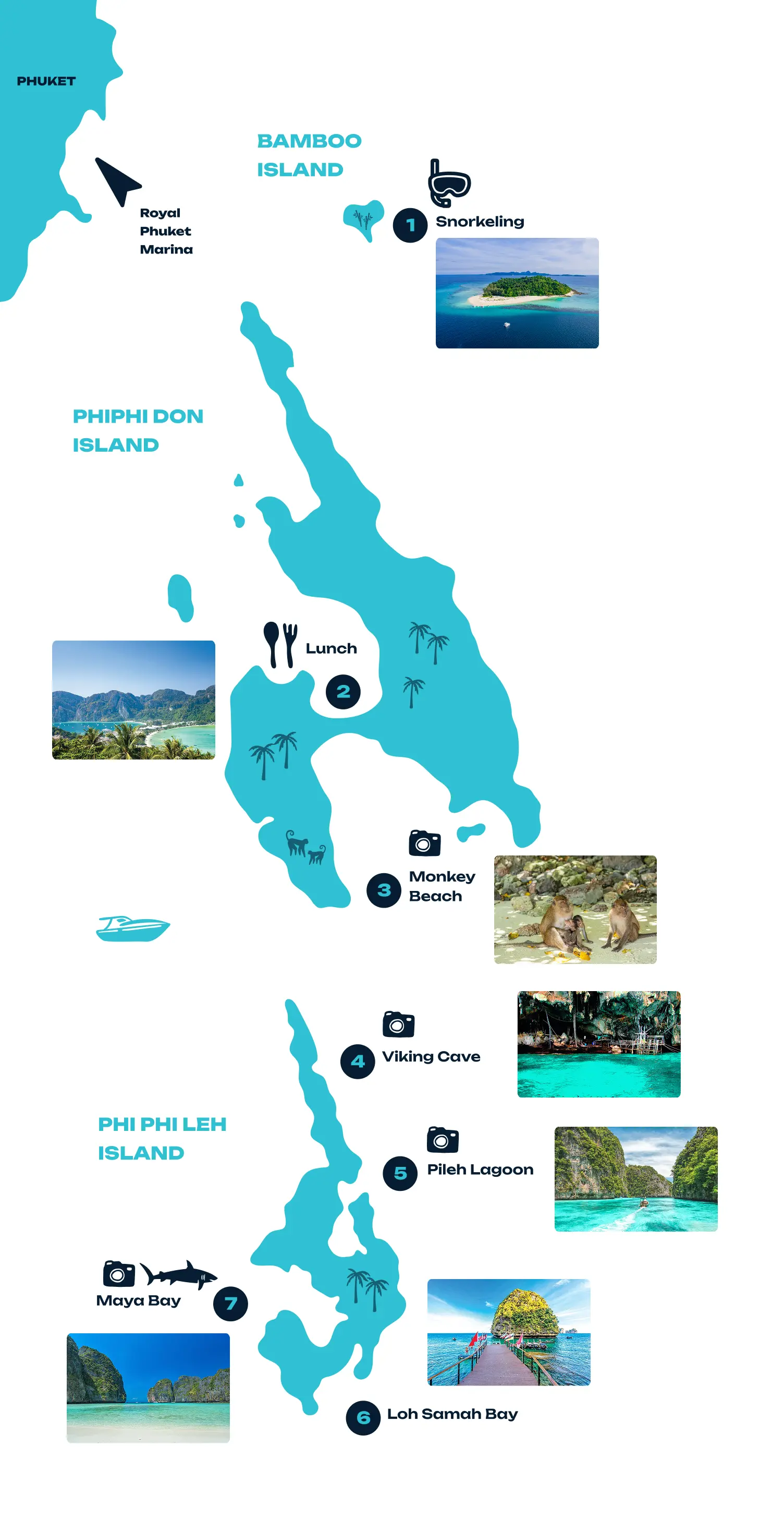 Cruise through crystal-clear waters and discover hidden lagoons and secret coves. Let the serene beauty of Maya Bay take your breath away, or hike to the viewpoint for a panoramic vista of these iconic islands. Whether you’re seeking adventure, relaxation, or a mix of both, our Phi Phi Island tours are designed to create memories that last a lifetime.
